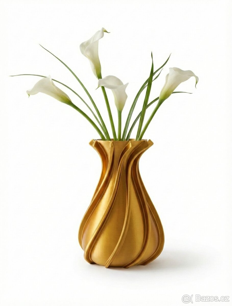 Nové designové vázy. Možnost Výroby 3D tiskem různé tvary, druhy a odstíny materiálů. Váza na prvním obrázku je vysoká 20 cm a je vyrobena ze zlatého PLA leskléo materiálu - nová (i tato váza může být vyrobena v jiném rozměru i materiálu). Vyrobíme vám také zakázkově 3D tiskem vše co budete potřebovat. www.3DtiskOK.cz Kontakt možno i přes WhatsAPP - Radek Gold (tel: 777280528)