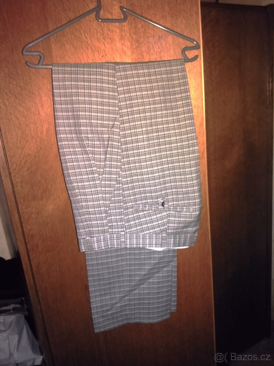 Prodám kostkované,nové,nepoužité,tesilové kalhoty.Obvod v pase 86cm.