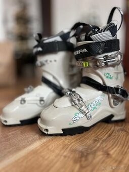 CZ/ skialpove boty - pro oba druhy vazani jak normalni tak pinové, v super stavu, Scarpa bota 245cm cili pro nohu dlouhou 225-235mm, boty jsou lehke. #scott #skitoury #skialpy #dynafit #ortovox #atomic #hagan #technica #majesty #scarpa