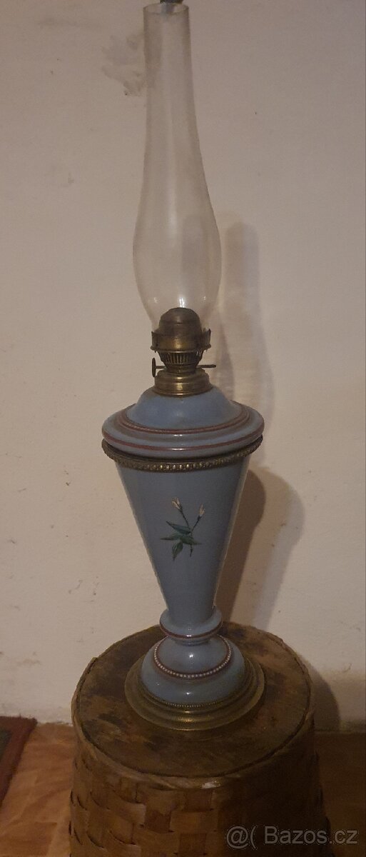 Prodám ručně milovanou petrolejku-sklo-mosaz-výška 34cm-cena-1400kc