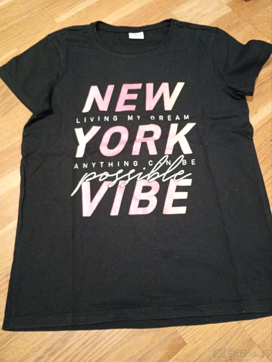 Dívčí černé tričko s krátkým rukávem a s potiskem velikosti 158/164