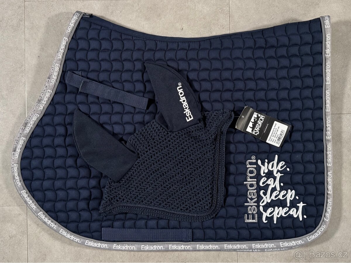 Prodám sadu Eskadron z kolekce RESR, barva navy. Podsedlová dečka VS, na koni pouze jednou na focení, čabraka full nová.