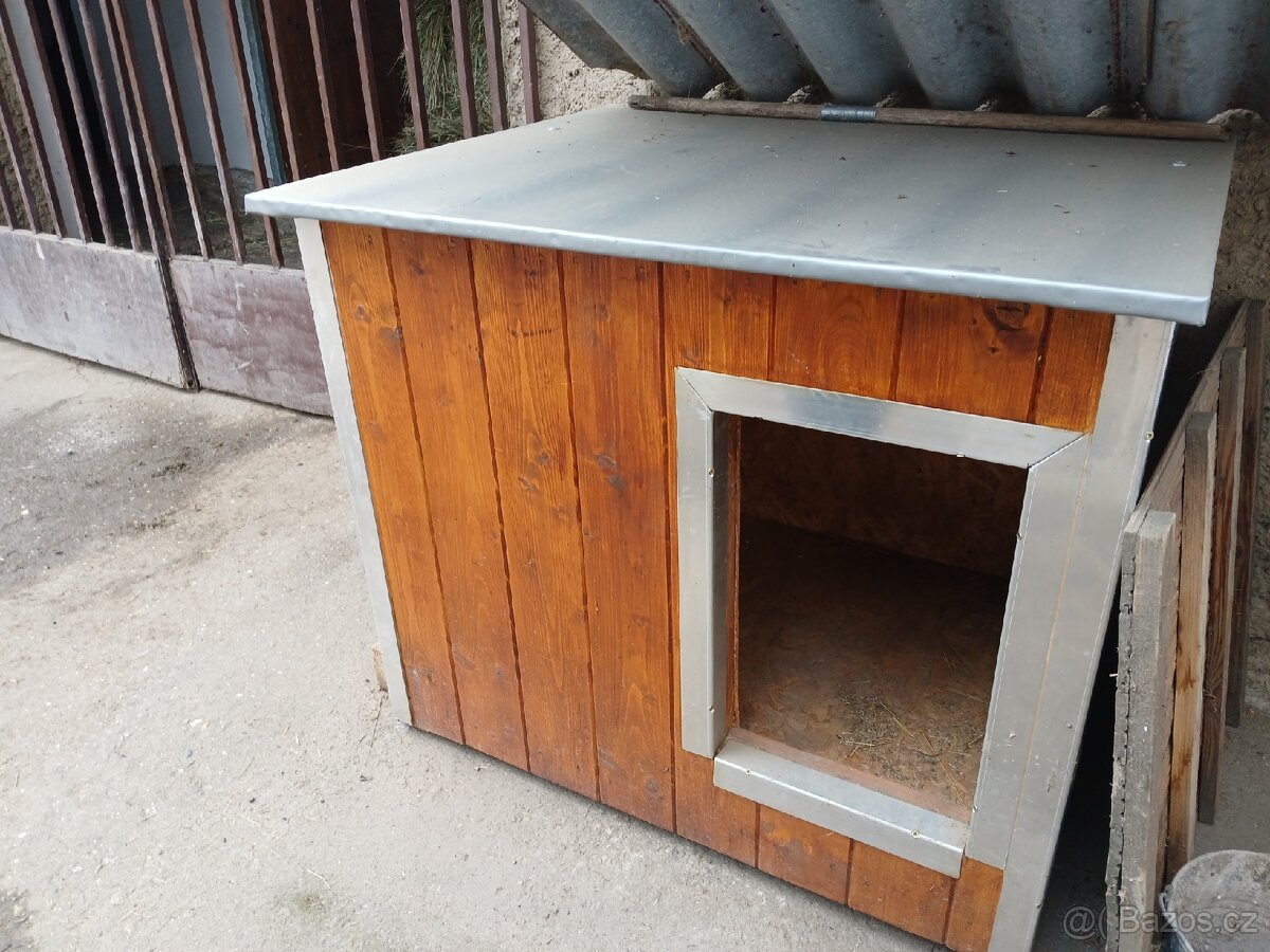 Zateplená psi bouda 6 cm polystyren. Vnitřní rozměr 70x90 venkovní 90x110. Je to domácí výroby a byla používaná jen 2 měsíce.