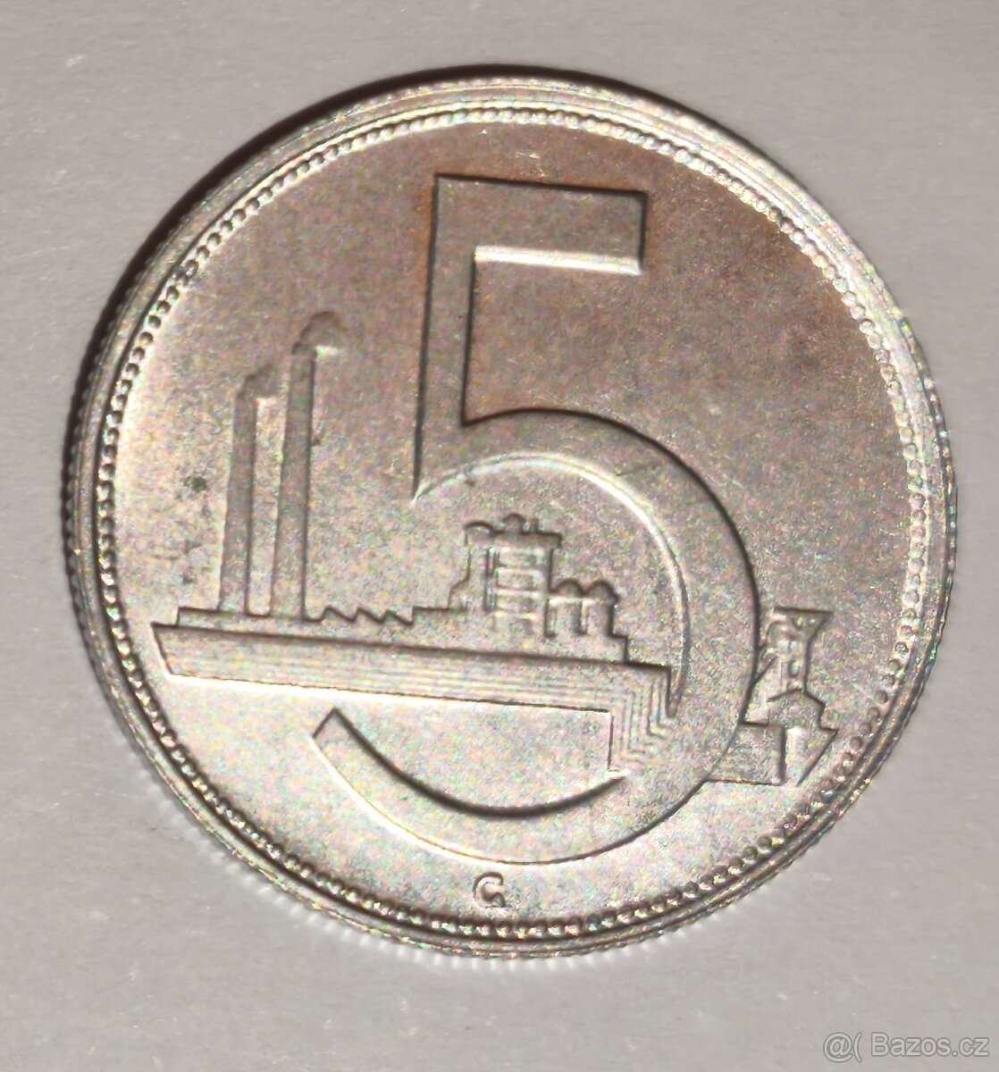5 Kčs 1938 obě varianty vlnovky na hraně