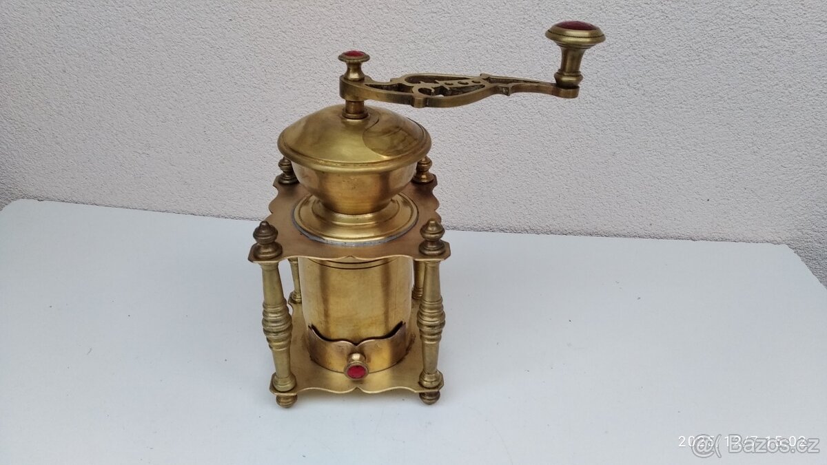krásný mosazný mlýnek, komlet vyčištěný, funkční, stačí vystavit :-)