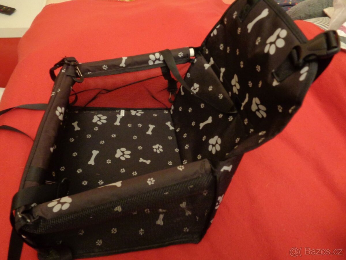 Sedačka byla využita jen 2x. Je určena pro malého psa. Upevnění pomocí popruhu ke kšírám. Rozměry jsou 40 x 32 cm. Podobná na Alze za 579,-. Poslední dvě fotografie jsou převzaté z web stránek.