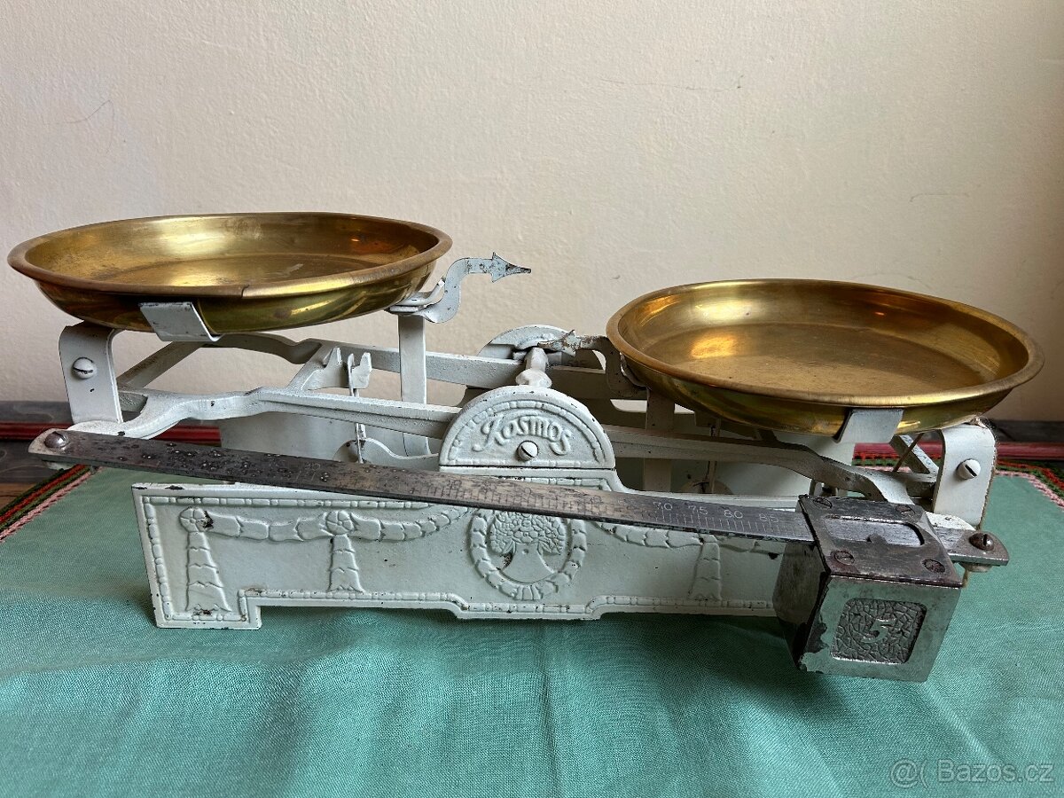 Prodám staré celokovové kuchyňské váhy s mosaznými miskami zn. Kosmos. Vhodné jako dekorace do chalupy.