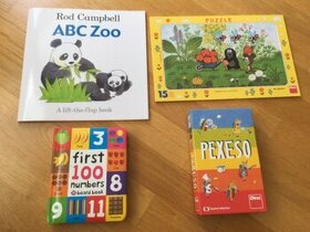 Prodám anglickou knížku pro nejmenší ABC Zoo a knížku first 100 numbers. Cena za kus 100,-Kč. Puzzle krtek zdarma při nákupu obou knížek. Pexeso je již prodané. Osobní předání Brno, Opava nebo balíkovna. Pište prosím na e-mail.
