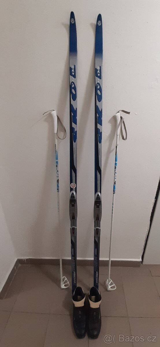 Prodám běžecký set SKOL, lyže se šupinami vel. 185 cm, hůlky 145 cm, boty vel. 39-40. Vše už trochu jeté, ale plně funkční. Pouze osobní odběr v Bystrci.