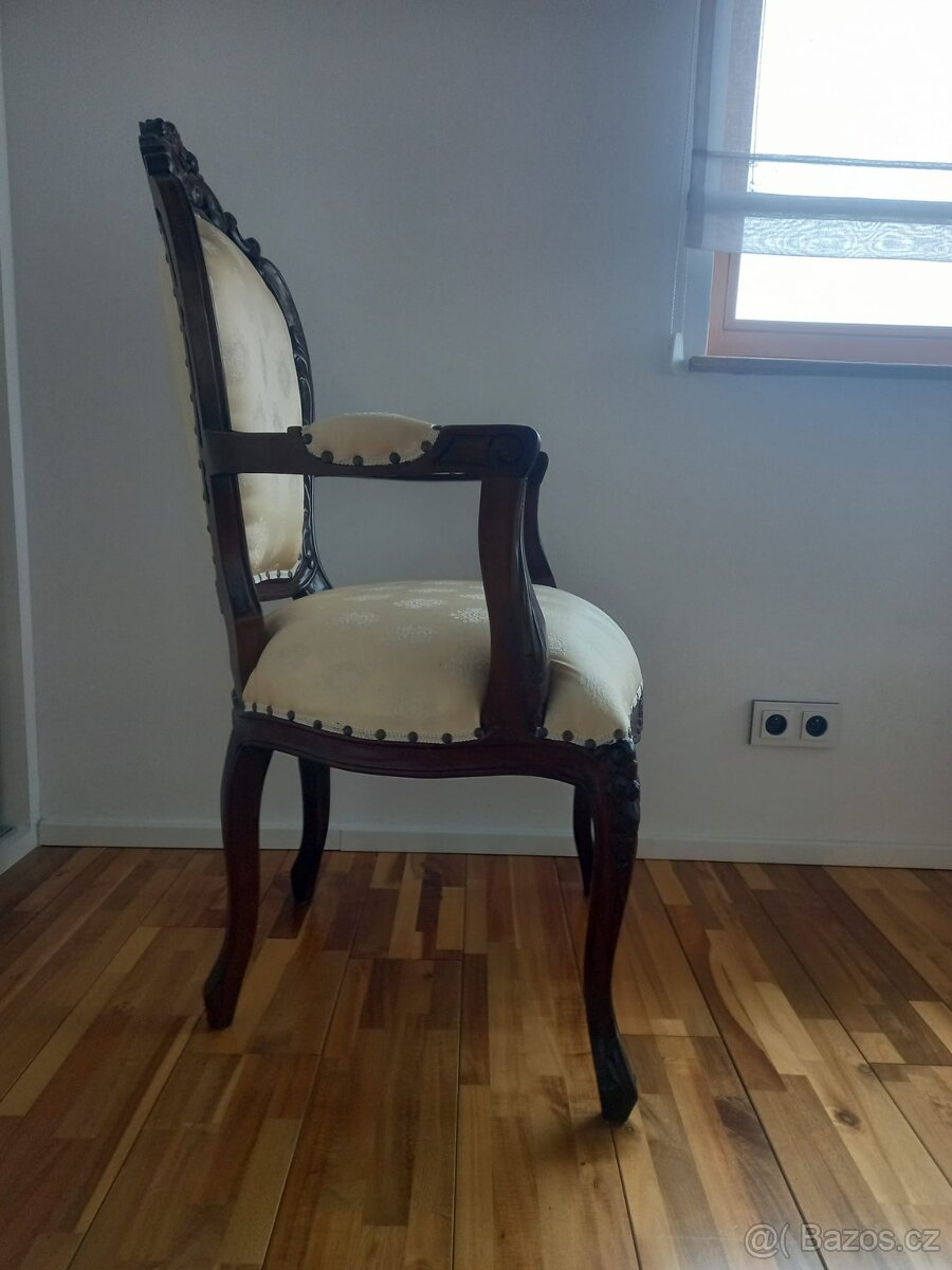 Prodám starožitný nábytek. Jedná se o 2 židle a jeden stůl, jedna židle. Nábytek je v krásném stavu viz fotografie.