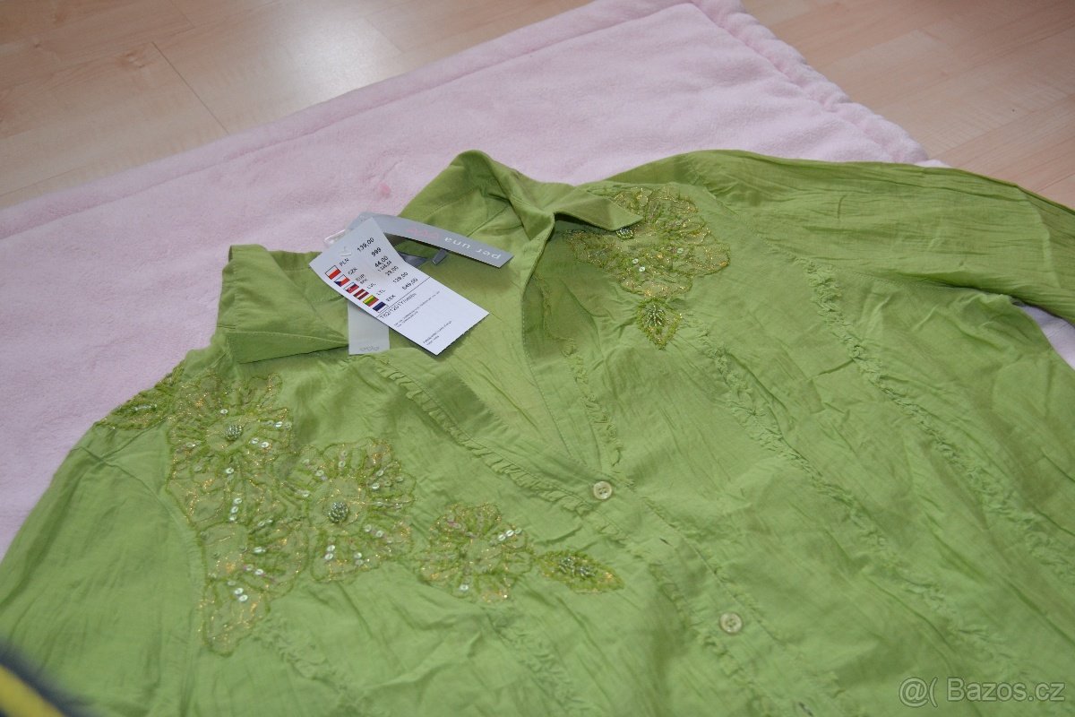 Nádherná Marks and Spencer halenka dámska, jemný ľahučký materiál, krásna výšivka, nádherná zelená farba- nedá sa presne zachytiť fotením. Velikost 18, odpovídá 44 - 46. Nová s visačkou. PC 999 CZK