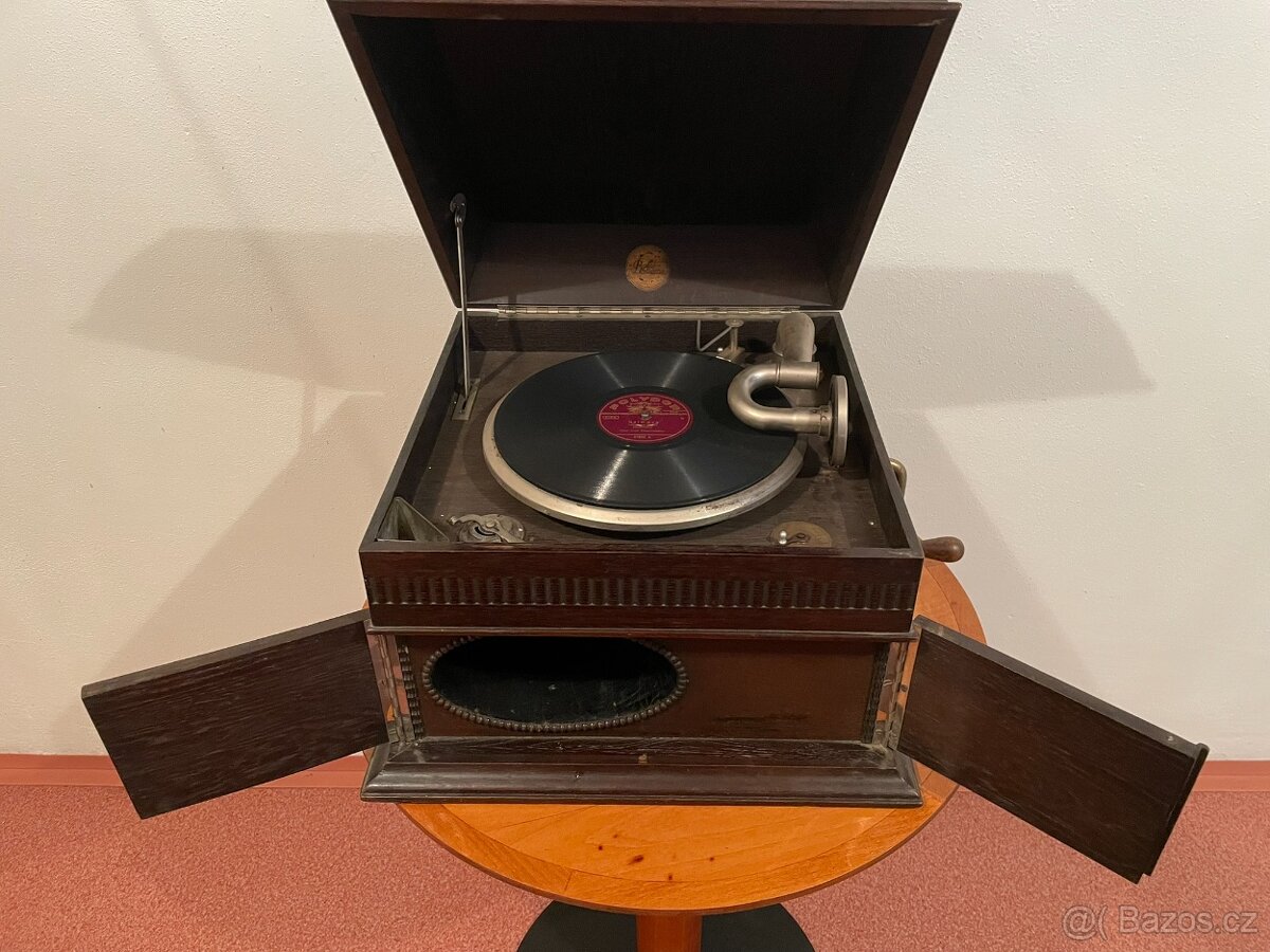 Cena: Nabídněte. Prodám starý gramofon na kliku s dvířky.