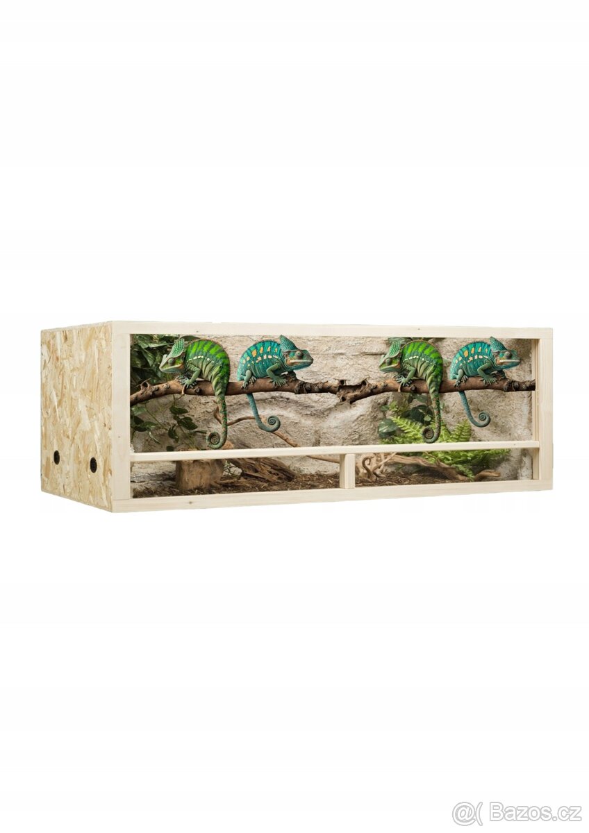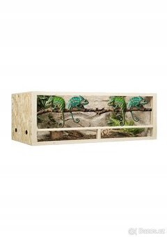 Terárium z osb desek, užíváno cca půl roku želvou zelenavou. Nabízím k němu i nějaké zbytky nepoužité podestýlky z kokosového vlákna, kameny, šišky, domeček atd (samozřejmě není povinností). UV výbojka 50w nebo 70w (máme obě) za 900,- jedna, i s předřadníkem. Součástí také denní osvětlení.