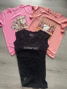 krásná trika u dvou psané velikost S ale měřte,růžové a oranžové ší.46 cm,černé ší.44 cm,trika jsou na parádu,poštovné 90,-ZÁSILKOVNA 89,-balíkovna ČP ZA 75,- i osobní převzetí-více věcí jedno poštovné( pozitivních hodnocení mám přes 900 mohu doložit)