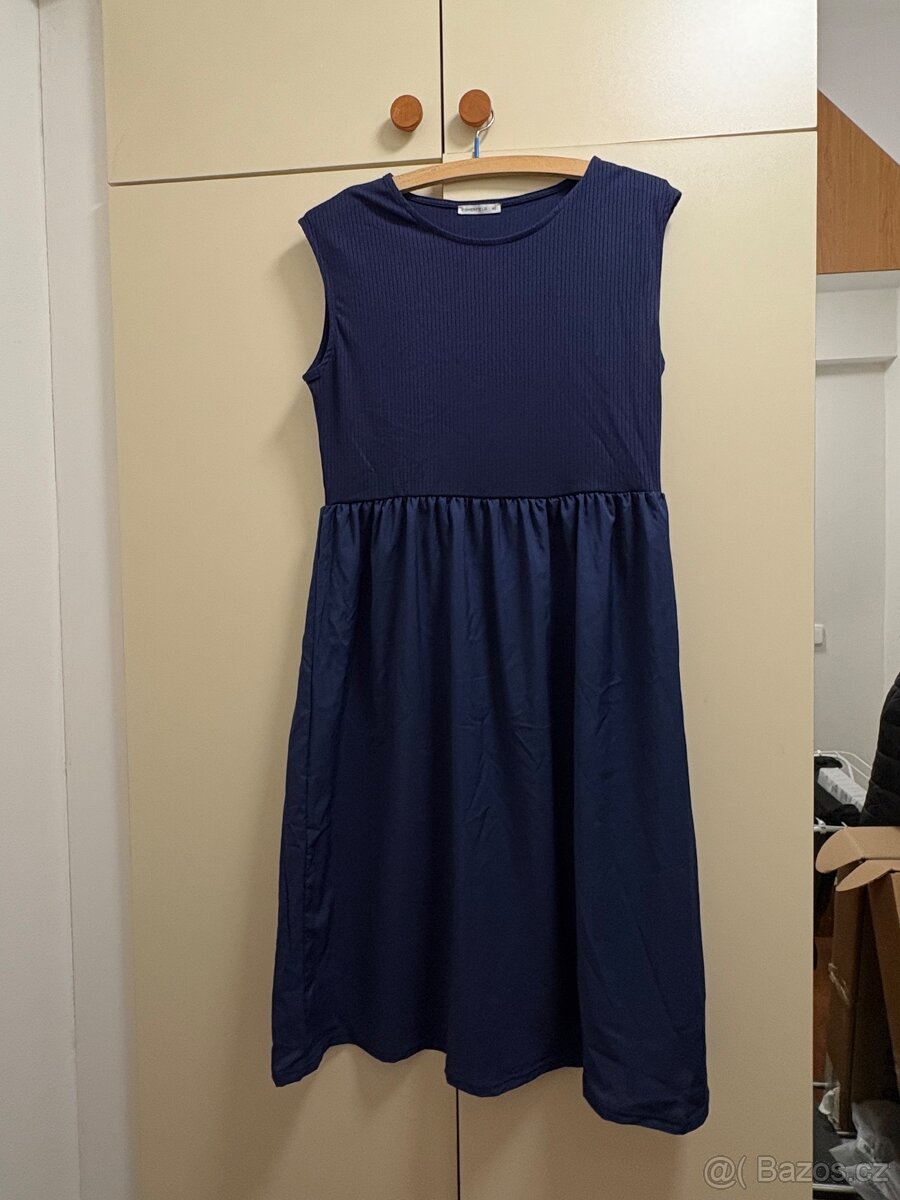 Prodám nenošené modré šaty, vrch je elastický, a sukně chladivější materiál. *osobní odběr možný v Praze, Brně nebo pošlu zásilkovnou.
