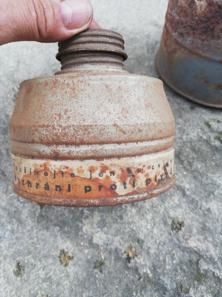 Obal a filtr k masce pro hasiče, předválečný, maska chybí