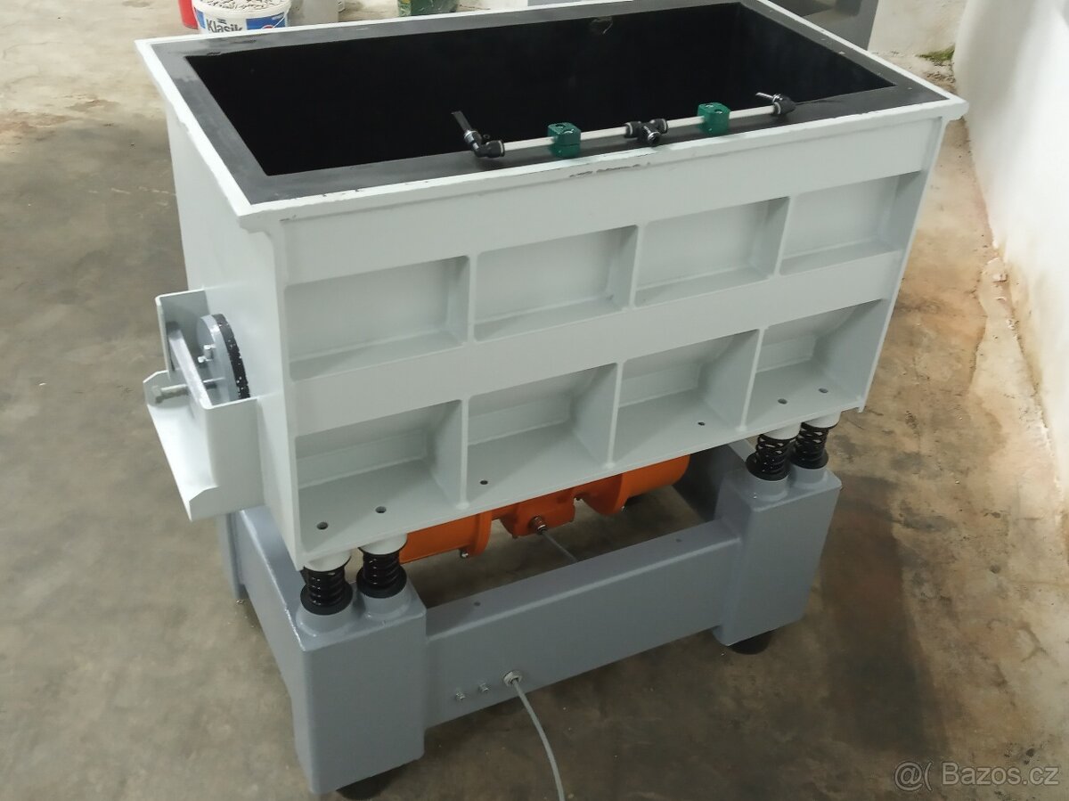 Cena: Dohodou. Prodám Vibrační žlab objem cca 130 litrů - 1 rok záruka. Vibrační žlab, šajrák, omílací stroj, omílačka