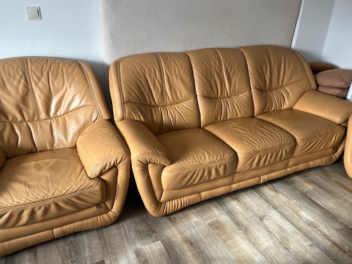 Prodám zachovalou koženou sedačku 3+2+1 ,205 cm,150 cm,100 cm NEROZKLÁDACÍ