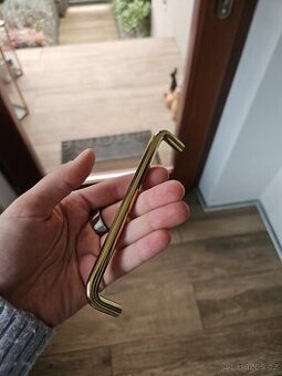 Cena: Zdarma. Daruji za odvoz 8 zlatých úchytek spolu se šroubky. Rozteč 128 mm.