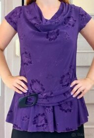 Prodám společenskou halenku fialové barvy,Pěkný stav.Téměř nenošené.Uvedená velikost 42, ale odpovídá spíše vel.č.38-40.(přes prsa 2x42cm).