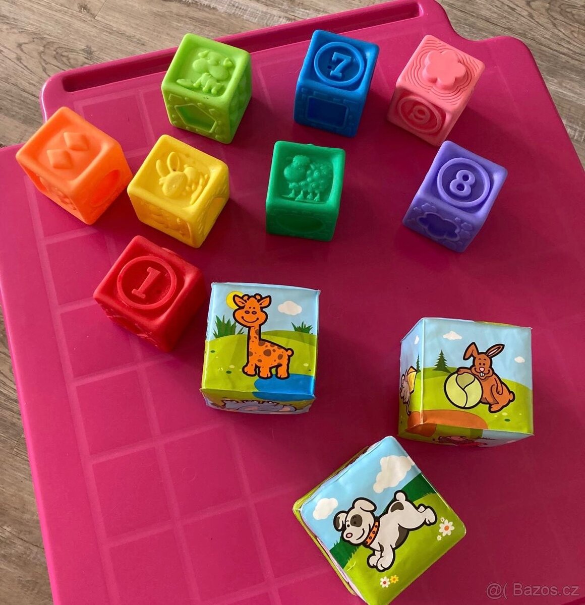 Prodám málo hrané hračky - stav nový. Foto 1 ) 100 Kč - kostky Foto 2) 300 Kč - panda + klíče na baterky ( zvuky ) Foto 3) 300 Kč - labyrint + 2x míček Foto 4) 300 Kč - skládanky Foto 5) 500 Kč - hry ( jedna na baterky ) Foto 6) 400 Kč - interaktivní hra - na baterky Foto 7) 500 Kč - tahací pes a zvukový telefon na baterky Všechny hračky ve stavu nových Za vše celkem 900 Kč