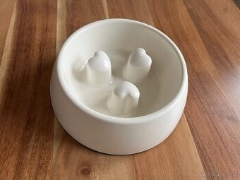 Prodám protihltací misku, která pomáhá zpomalit krmení a zabraňuje nadýmání. Vnitřní výstupky mají tvar srdíček. Vhodná pro střední plemena. Při 500 ml vody sahá hladina těsně pod srdíčka. Známky opotřebení viz foto. Osobní převzetí Liberec.