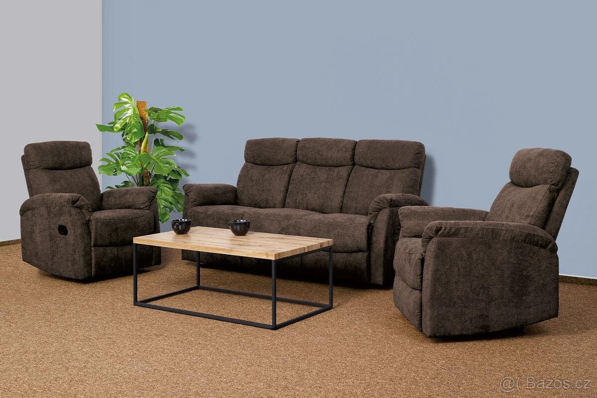 Prodám rok starou pohovku se 2mi křesly. Pravá i levá strana pohovky je polohovatelná - vysune se podnožka. U křesel také a po opření lze křeslo zatlačit až skoro do lehu. Důvod prodeje stěhování