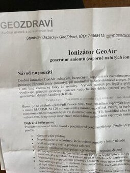 Osobní ionizátor prodam z manželovi pozůstalosti nepoužitý .