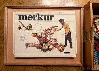 Stavebnice MerkurV dřevěné krabici jsou dvě sady dílů stavebnice. Stavebnice je v pořádku, nechybí snad nic.