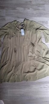 khaki, nové, nenošené, vypodšívkované, krajka je na jednom místě na zádech zašívaná, ale není to téměř vidět, přes prsa 53cm, délka zad 88cm, rukáv od krku 54cm
