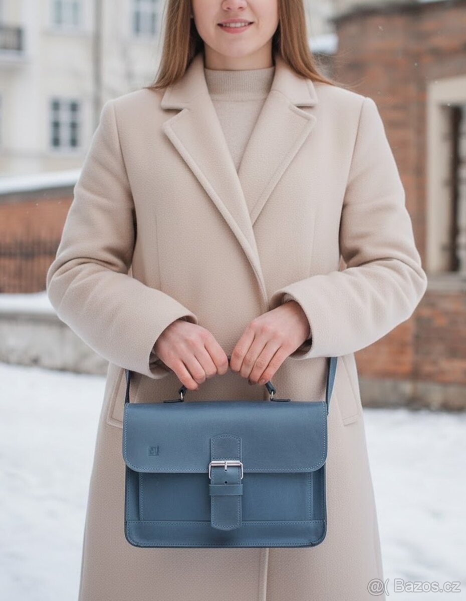 Středně velká kožená kabelka do ruky i na rameno. Je vyrobená z hovězí kůže. Materiál: hladká kůže Vnější část: kapsa pod klopou Vnitřní část: kapsa na zip, kapsa na mobil, poutko na klíče, poutka na pera Zapínání: aktovkový zámek Ramenní popruh: nastavitelný, maximální délka 125 cm Rozměry: 27 x 18 x 6 cm Vejde se: formát A5 Barva: modrošedá Pro: ženy Váha: 0,65 kg Balíkovna/Zásilkovna 100 Kč