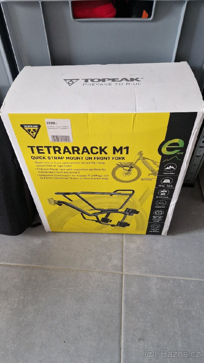Jedná se o přední nosič na kolo Topeak TetraRack M1. Tento nosič je navržen pro montáž na odpružené nebo pevné vidlice horských kol a elektrokol bez montážních otvorů. Jedná se o přední nosič na kolo Topeak TetraRack M1. Tento nosič je navržen pro montáž na odpružené nebo pevné vidlice horských kol a elektrokol bez montážních otvorů. Nosič je také kompatibilní s brašnami se systémy KLICKfix® / RackTime® Snapit nebo Vario. Nedoporučuje se na montáž na karbonové vidlice.