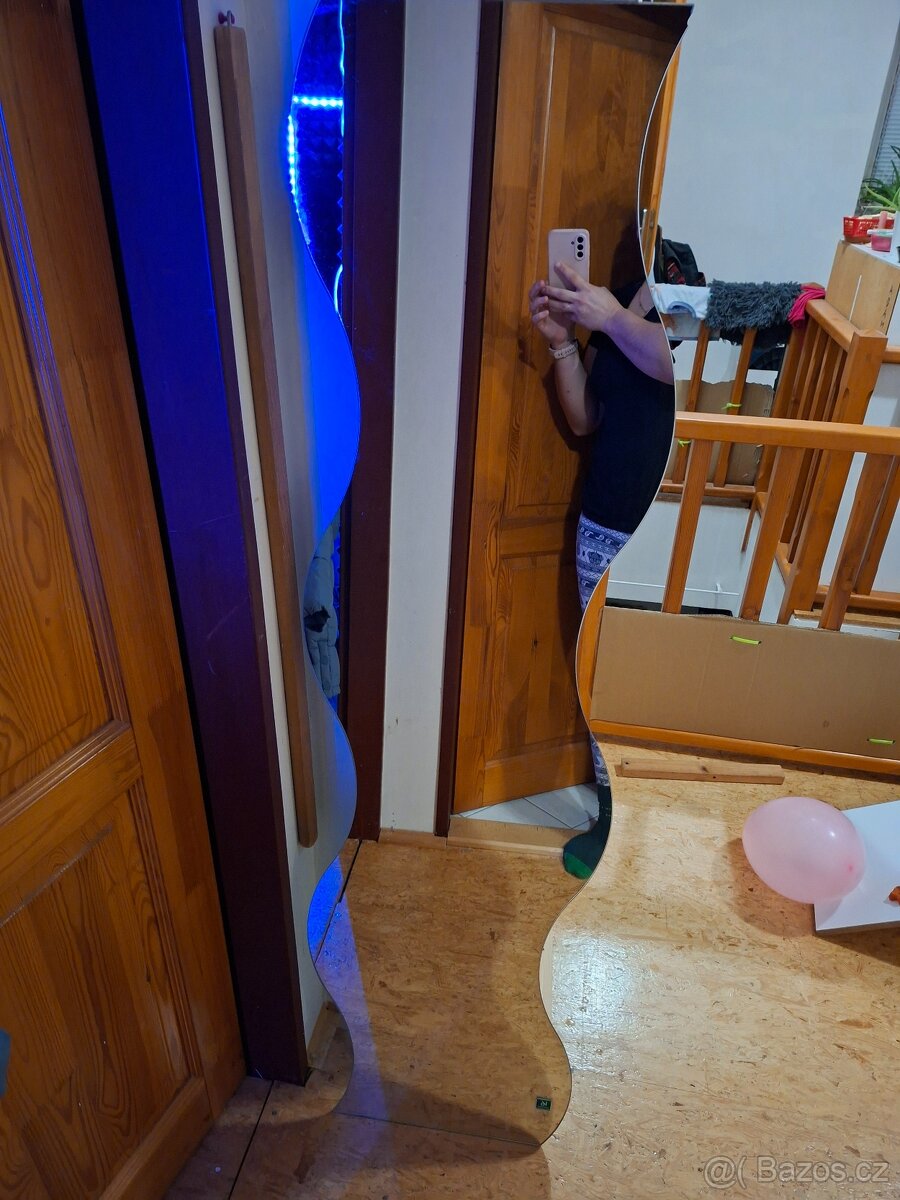 Zrcadlo na stěnu horní roh trochu naštípnutý, jinak v pořádku. Výška 150cm, Šířka 40cm.