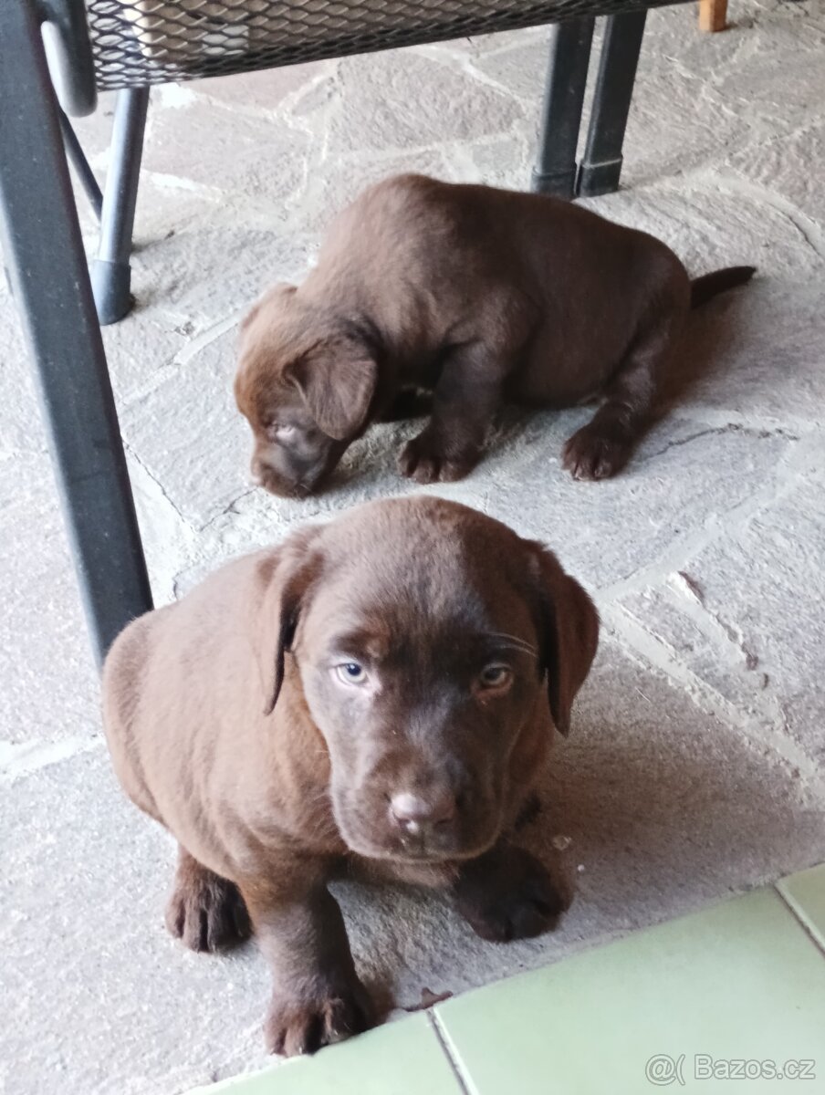 Cena: Dohodou. Čokoládově hnědá štěňátka, fenky i pejsci, velmi pěkná, 7 týdnů stará ihned k odběru, očkování , čipovani samozřejmosti! několikrát odčervená, s kupní smlouvou, rodiče bezkonfliktní přátelské povahy, otec s PP. Možno email, watsap, SMS, tel: 722774299.