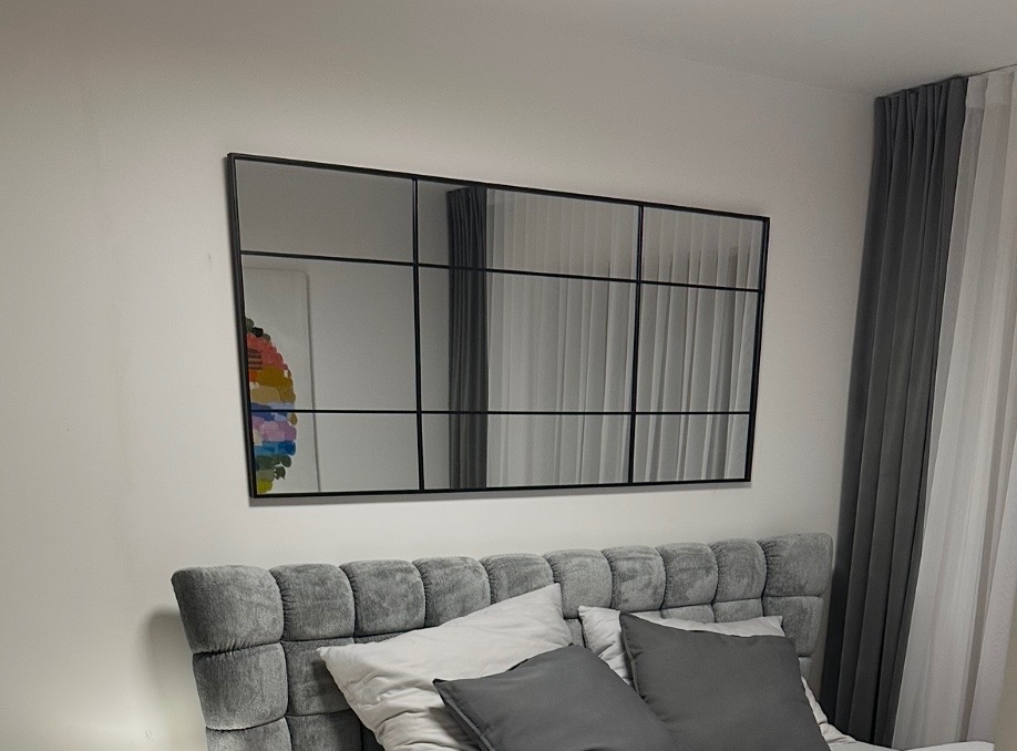 Prodám velké zrcadlo, černý rám, industriální styl.