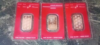 Prodám Stříbrný slitek Argor Heraeus 10g. Celkem 3 kusy. 1700,-/kus nebo 5000,- za všechny tři.