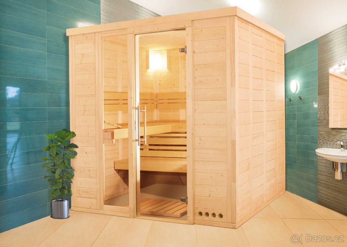 Nabízíme luxusní panelové sauny do interiéru, které jsou vhodné pro vytvoření finské, infra nebo kombinované sauny. Předností saun je rychlá a jednoduchá montáž. Dodané díly jsou připravené k sestavení bez dodatečných úprav a potřeby speciálního nářadí. Stavební konstrukce: Stěny a střešní panely jsou vyrobené ze severského smrku tloušťky 40 mm, což zajišťuje dostatečné izolační vlastnosti a rychlý ohřev. Ve stěnách jsou předvrtané otvory na rozvody elektroinstalace pro kamna a osvětlení. Dveře jsou skleněné, z bezpečnostního tvrzeného skla tloušťky 8 mm. Orientaci dveří L/P si můžete zvolit sami. Interiérové vybavení je z abachi nebo thermo osiky. Varianty řešení: Varianta 1: •145x117x200 cm •Součástí vybavení je 1x saunová lavička, 1x opěrka zad, 1x opěrka hlavy, podlahový rošt, kryt saunových kamen, kryt světla. •Cena od 49 900 Kč Varianta 2: •172x208X200 cm •Součástí vybavení jsou 2x saunová lavice šířky 58 cm, 1x opěrka zad, 2x opěrka hlavy, 1x meziopěrka, podlahový rošt,