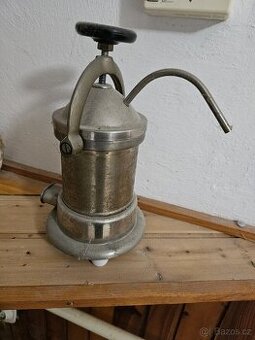 Cena: Nabídněte. Starý elektrický kávovar / perkolátor – retro Prodám starý elektrický kávovar (perkolátor) v celokovovém provedení. Masivní těžké tělo, horní šroubovací víko s přítlakem a výtoková trubice. Stylově cca 40.–60. léta. Vhodné jako retro dekorace, do kavárny, na chalupu nebo k renovaci. Bez přívodního kabelu – nezkoušeno (viz foto). Stav odpovídá stáří. Cenu nabídněte.