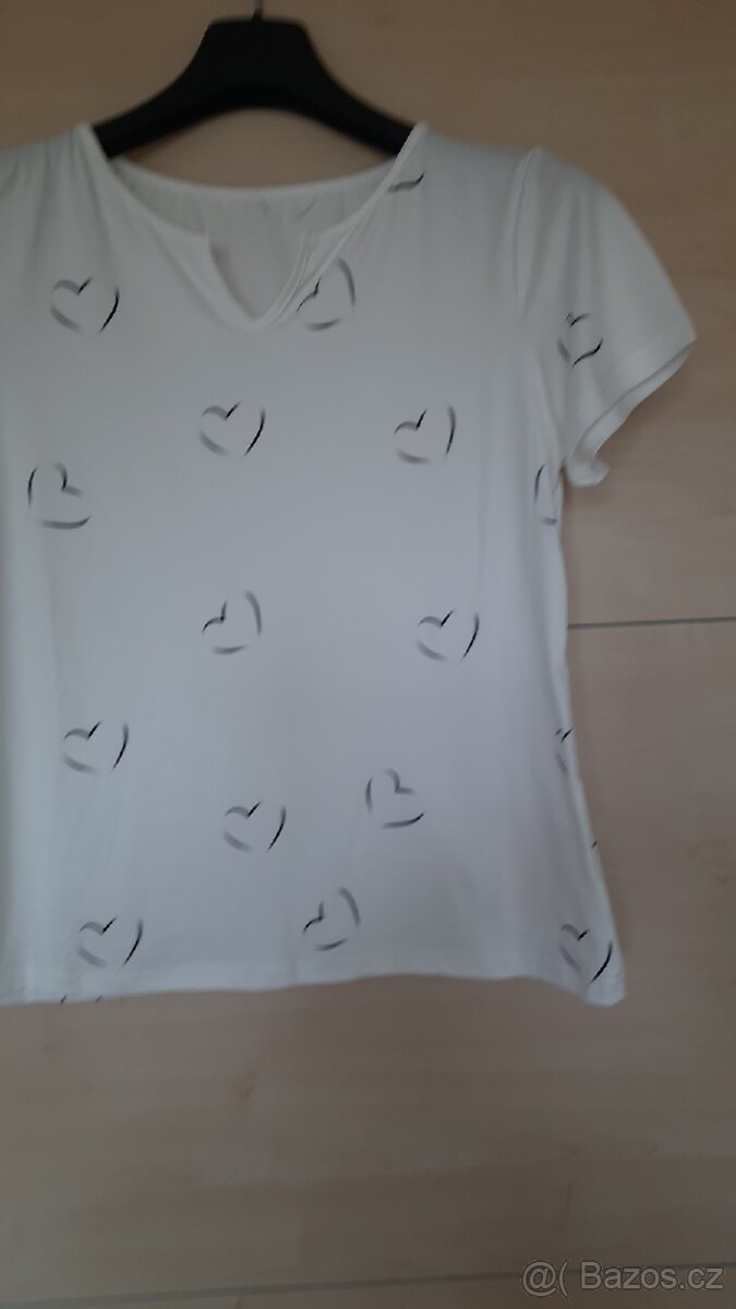 Tričko, bílé s černými srdíčky. Tričko je nové nenošene. Velice příjemná kvalita.