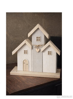 Dřevěné dekorační domečkyProdám dřevěné dekorační domečky, různé varianty. Šířka 46 cm, výška 43. Cena 690,- nebarvené k vlastnímu dokončení 500,-