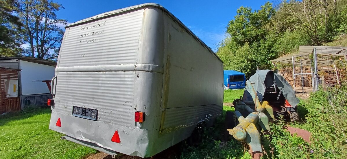 Retro karavan-prodejna, otvírá se celý bok, 1968, bez Tp a spz, na pevné stání, není hliníkový pouze tak vypadá. Koroze, kosmetika samozřejmostí. Má svůj styl, vhodné jako prodejna, kafé, klub, atd. takový jsem na netu nenašel asi ndr, nebo čechoslovácko tel.776111326