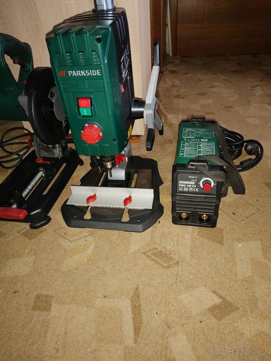 Dobrý den prodám set parkside sadu el nářadí vše plně funkční vrtačka stolní řezačka kovů kotouč nutno dokoupit zvlášť a svářečka PISG 120 invertor pro elektrody rutilove kabely jsou použité i ostatní nářadí vše funguje pouze osobní odběr po telefonické domluvě