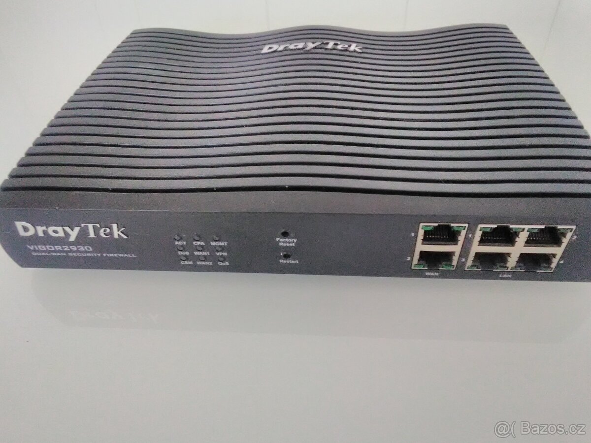 Cena: V textu. Prodám 2 starší plně funkční routery DrayTek Vigor 2930 za 350 Kč/ks. V případě odběru obou kusů je celková cena 600 Kč. Jedná se o Dual WAN Ethernet router s vysokým šifrovacím výkonem do 100 VPN IPSec spojení najednou a možností zálohy přes druhý WAN port. Router umožňuje sdílený přístup k internetu přes dva WAN porty s možností řízení provozu. Je určen pro středně náročné aplikace malých podniků a kanceláří. Podporuje množství funkcí nutných pro zvýšení bezpečnosti, vzdálený přístup, vytváření virtuálních privátních sítí (VPN) přes internet v jednom kompaktním zařízení. Osobní odběr v Písku nebo mohu zaslat přes balíkovnu za 75 Kč při platbě předem na účet nebo za 94 Kč při zaslání na dobírku. Mohu poslat i přes zásilkovnu, ale vyjde to o něco dráž.