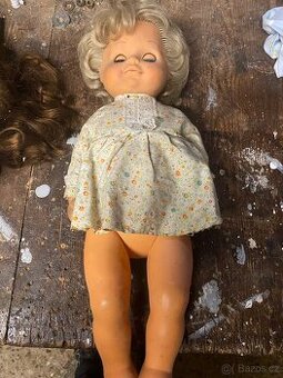 Prodám starší plastovou panenku z období ČSSR (cca 60.–70. léta). Původní vlasy, oblečená do dobových šatiček. Stav odpovídá stáří, viz foto. Vhodná jako dekorace nebo pro sběratele retro hraček.