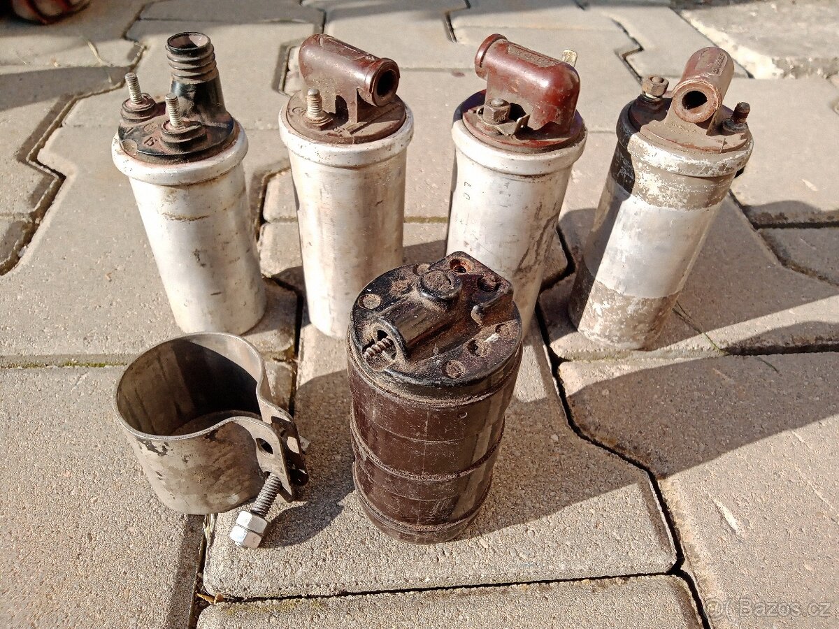 Cívky různé, 12V, 8V, 6V, 4V, ta bakelitová už není! Cena za kus 150,- při odběru všech 100,- za kus.