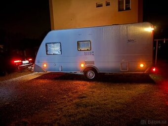 Nabízím soběstačný karavan pro 5 osob. Vpředu sezení rozložitelné na manželskou postel. Vzadu 2 palandy, uprostřed sezení rozložitelné na lůžko. Kuchyňka, sporák na plyn, lednice plyn/elektrika, topení plynové, wc se sprchovým koutem. v roce 2023 komplet nová výdřeva přední části (fotodokumentace) brzdy, ložiska. Karavan má markízu s LED osvětlením a s předstanem, rezervní kolo, hmotnosti 930/1300kg. V interiéru LED osvětlení. Karavan je ve velmi dobrém stavu, máme s nim hodně projeto. TK 4/2027. Ke karavanu jsou 3x campingova židle Eurotrail.