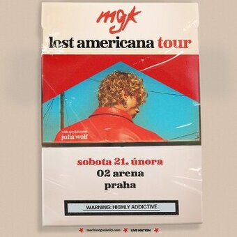 Prodám 1ks VIP vstupenku na koncert MACHINE GUN KELLY – Lost Americana Tour v termínu 21.2.2026 do Klubového patra O2 Areny. SEKTOR 210 Cena 3000 Kč/ks V ceně vstupenek: - neomezený bohatý catering (jídlo, alkohol, pití) - vlastní rychlý vstup (možný již 2hod. před začátkem koncertu) - šatna na klubovém patře zdarma