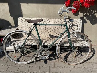 Nějaký hodně starý model. Má blatníky, světla. Kožené sedátko. Přehazovačka funguje. Nafouklé drží, neuchází. Pláště Made in Czechoslovakia. Bez záruky, na dekoraci apod.