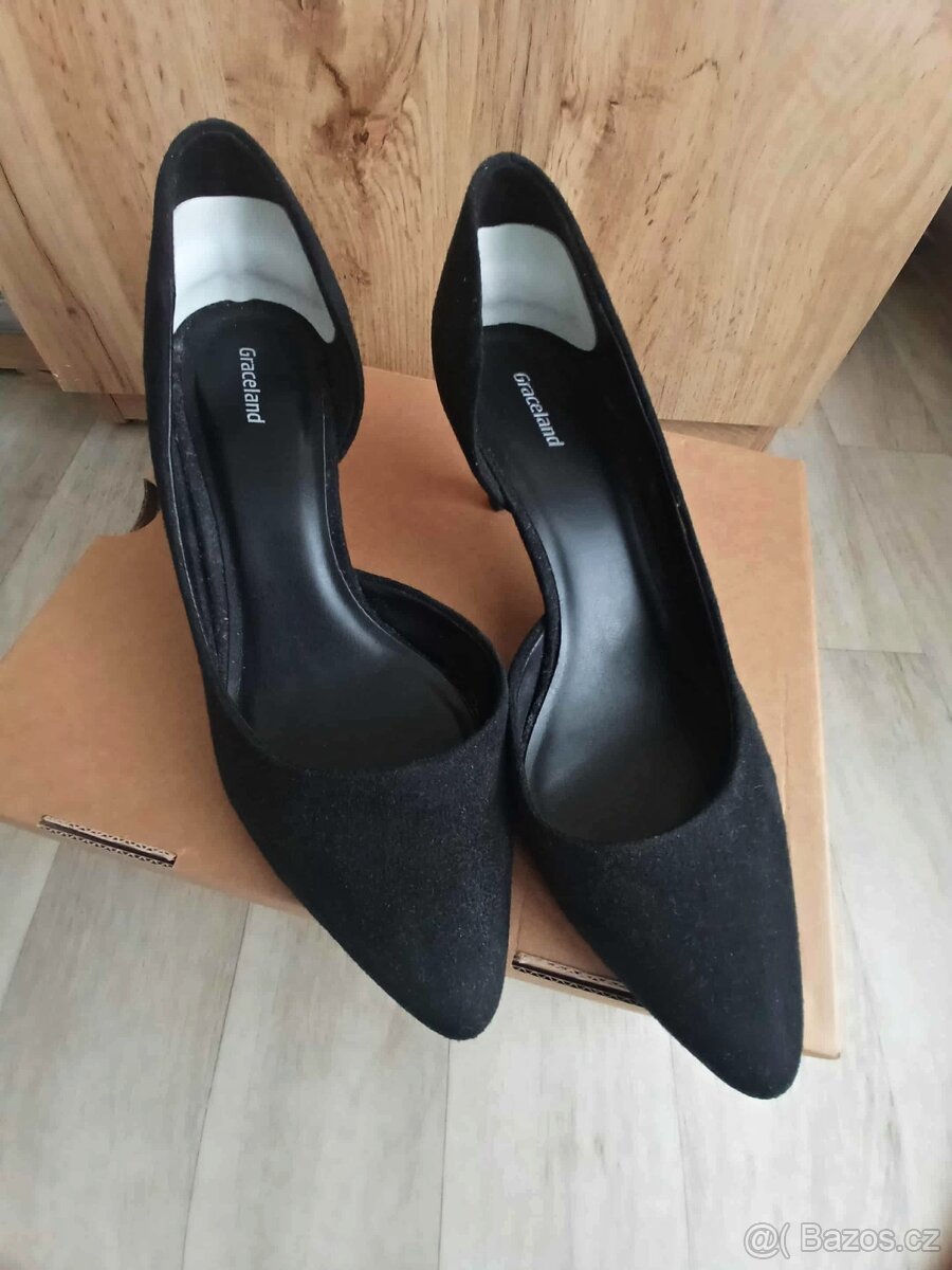 Jednou vzaté lodičky, součástí jsou nalepené bílé opatěnky - jdou odlepit. Velikost 40.