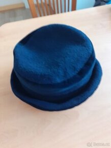 Prodám klobouček tmavěmodré barvy zdobený modrým sametem.Objem kloboučku kolem hlavy je cca 57 cm. Klobouček je zachovalý, velmi slušivý.